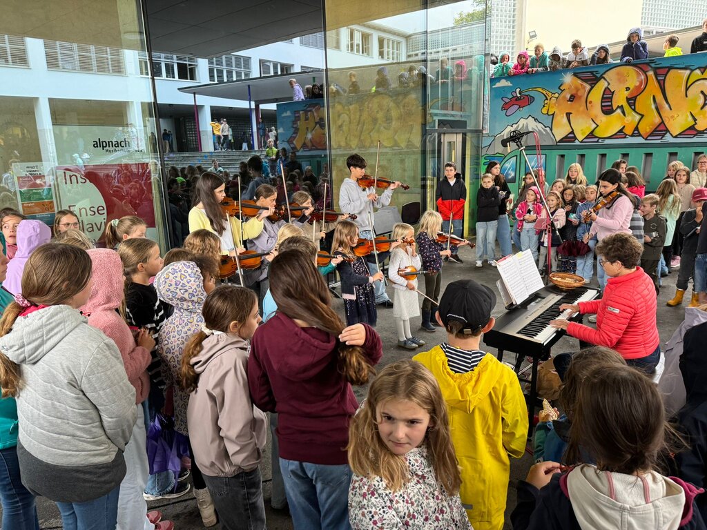 LU: Musikschule Region Malters: powerup_radio-Programm gemeinsam mit der PS 6a, inkl. Live-Pausenkonzert mit rund 20 Musikschülerinnen und -schülern, 4. September 2025